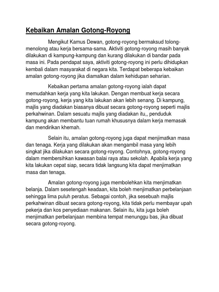 Semasa bergotong-royong selain dapat membersihkan. Contoh Karangan yang cemerlang. 31 Pentaksiran Tingkatan 3.